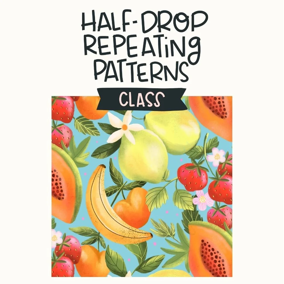 Learn to turn your painted motifs into seamless repeating patterns using a fun and easy process so you can design prints, products, and collections that look professional and sellable.