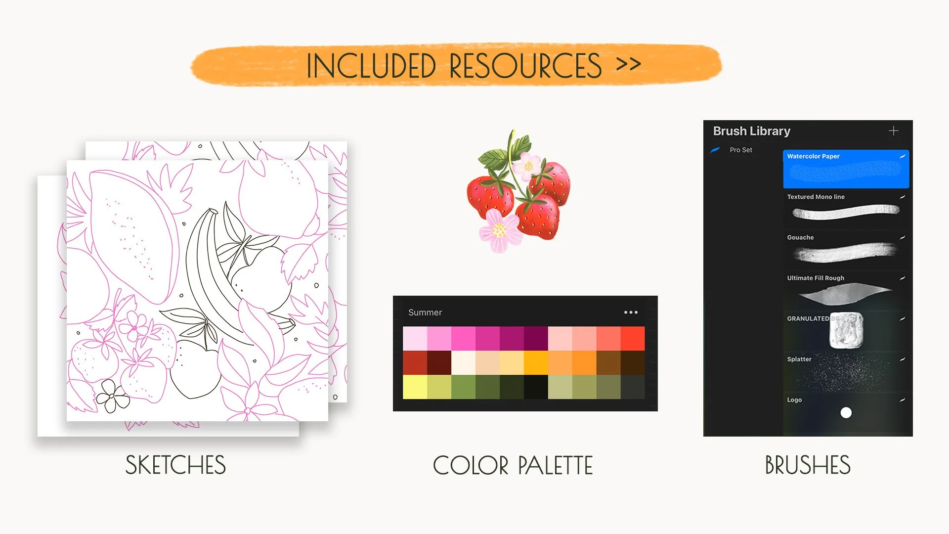 Yes. I'll show you how I create the fruit illustrations step by step. I'll even provide the exact same brushes I use so you can download them for free.